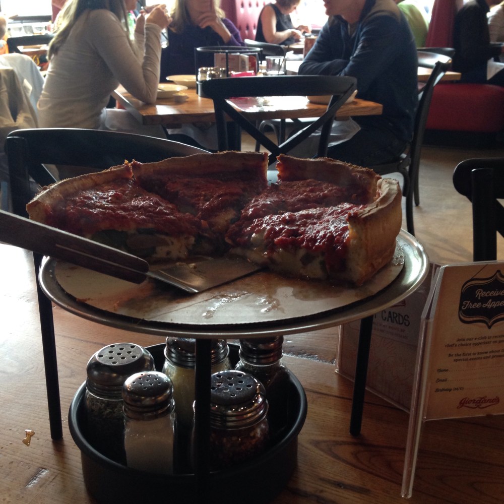 E’ ora di pranzo e non possiamo non provare la famosa Chicago deep dish pizza….45 minuti di attesa per la cottura di questa cosa qui