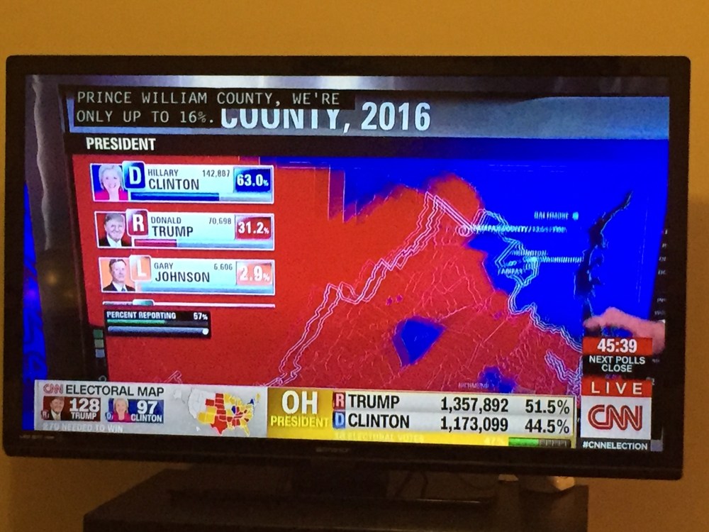 Election night Posted on novembre 9, 2016 by 1yearinkentucky Che ansia…. non posso credere che Trump stia prendendo tanti voti…ma la strada è ancora lunga! Speriamo! Condividi: Email a link to a friend (Si apre in una nuova finestra) E-mail Mi piace Caricamento...