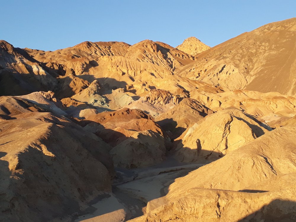 Con la macchina, all’interno della piana di Badwater, seguiamo un loop che costeggia formazioni rocciose che al tramonto si tingono di mille colori.
